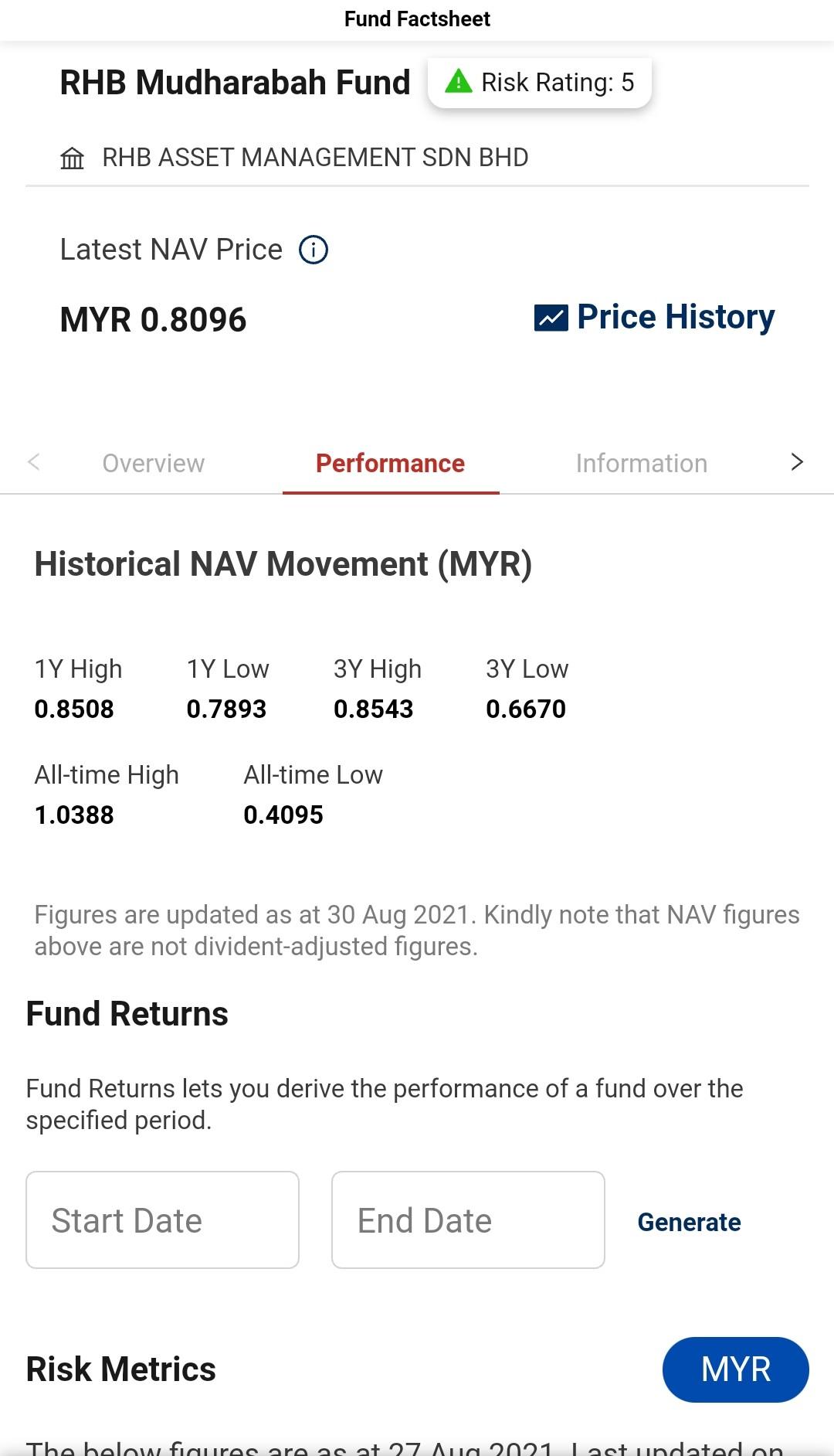 Solved Rhb Mudharabah Fund Risk Rating 5 M Rhb Asset Chegg Com